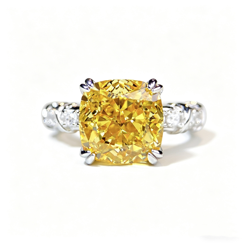 The solid cushion shape represents lifelong certainty; the radiance of the yellow diamond stands for one~in~a~million affection. The twisted band design flatters the hand, appearing elegant and natural for daily wear, while commanding presence on formal occasions. It serves as a sincere declaration of love for proposals, a medal of growth for yourself, and an eternal promise worn on your finger — to "forever guard your radiance and pride".